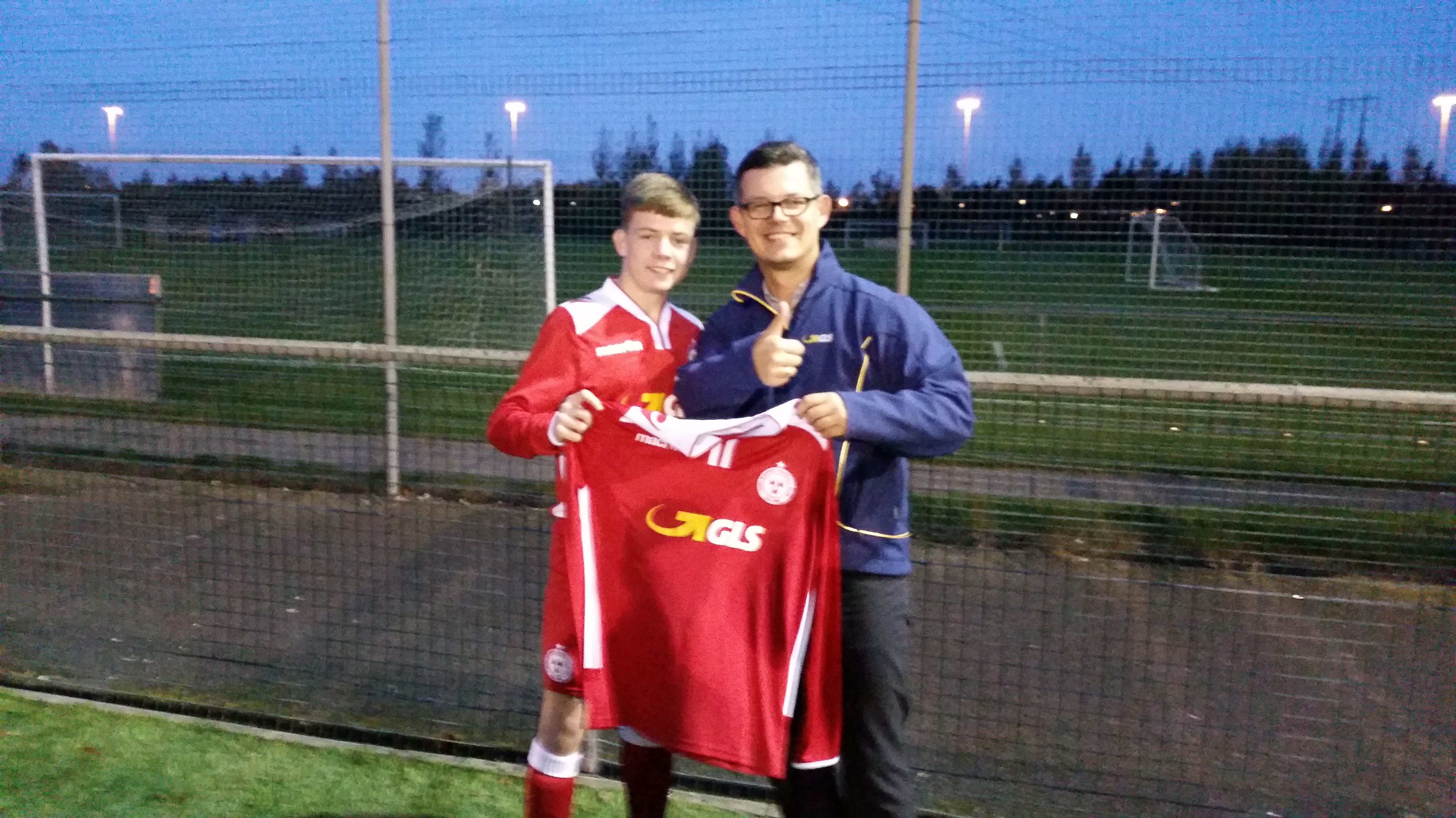 GLS are one of the largest and most reliable courier services in Europe and with a great base in Ireland they have decided the Shelbourne FC Youth Academy would be their first foray into Sports Sponsorship, the attached pictures show our u14 captain James Cummiskey receiving the GLS sponsored jerseys from GLS Irish MD Robert Kaluzynski.